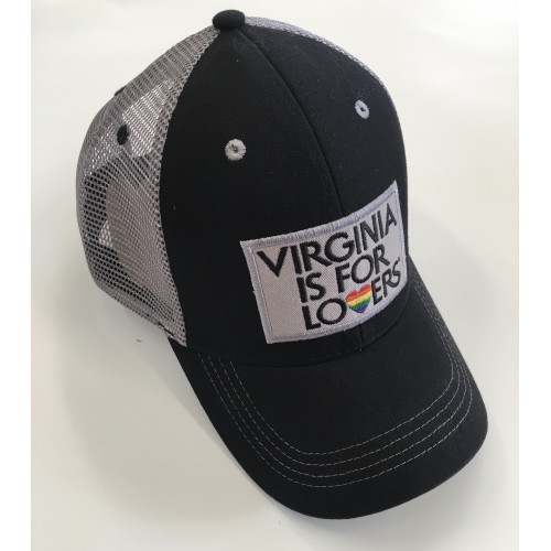 This hat features the "Virginia is for Lovers" logo with a rainbow heart on a sleek black background. It is lightweight, with breathable mesh, and easily adjustable. A great way to show your Virginia pride!